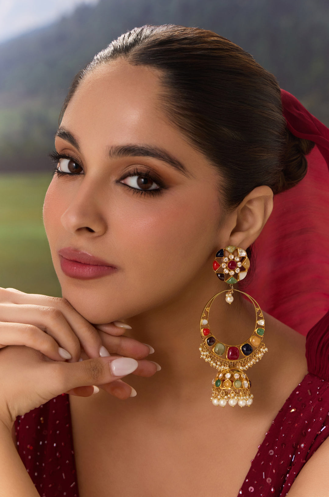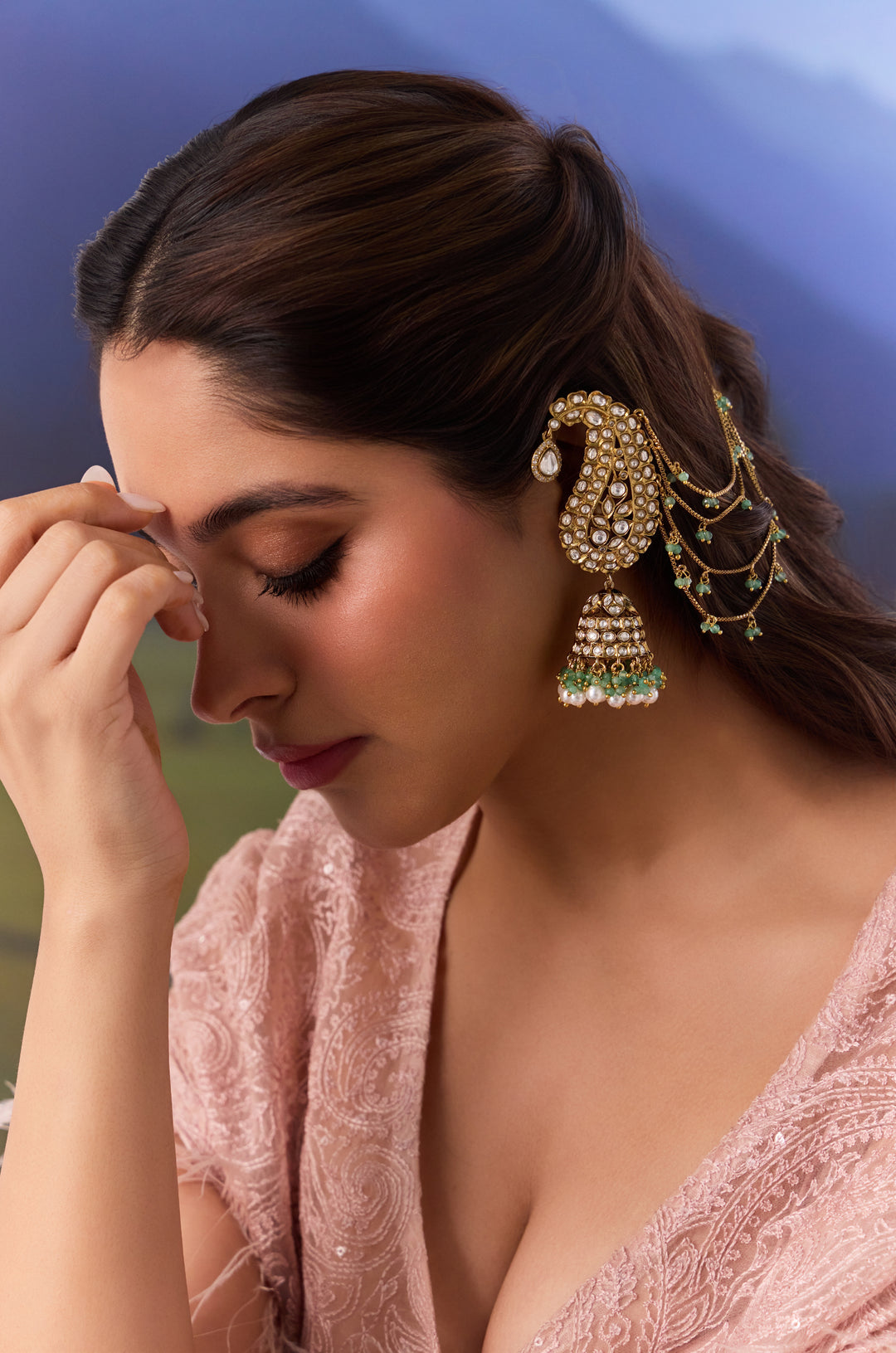 Lilita Kundan Earrings with Hair Chain