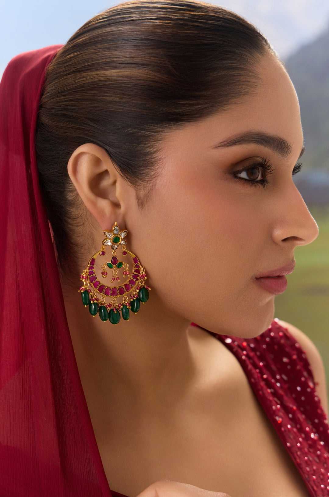 Ulani Red Polki Chandbali Earrings
