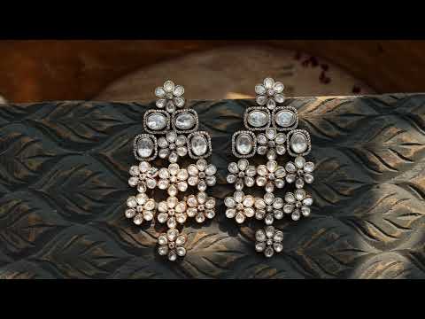 Inspired by the delicate beauty of a blooming flower, the Prini polki earrings are a testament to exquisite craftsmanship. The intricate floral motif, adorned with glistening polkis, creates a captivating display of elegance. These earrings are not just an accessory, but a statement piece that adds a touch of understated glamour to any ensemble.