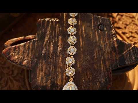 Enhance your classic and vintage style with the Amayra silver polki maangtikka. Made with fine silver and impeccable craftsmanship, this beautiful piece is embellished with stunning moissanite polkis and elegant pearls. It's the perfect accessory for special occasions and can be passed down as a cherished heirloom for generations to come. Add a timeless touch to your jewelry collection with this exquisite maangtikka.
