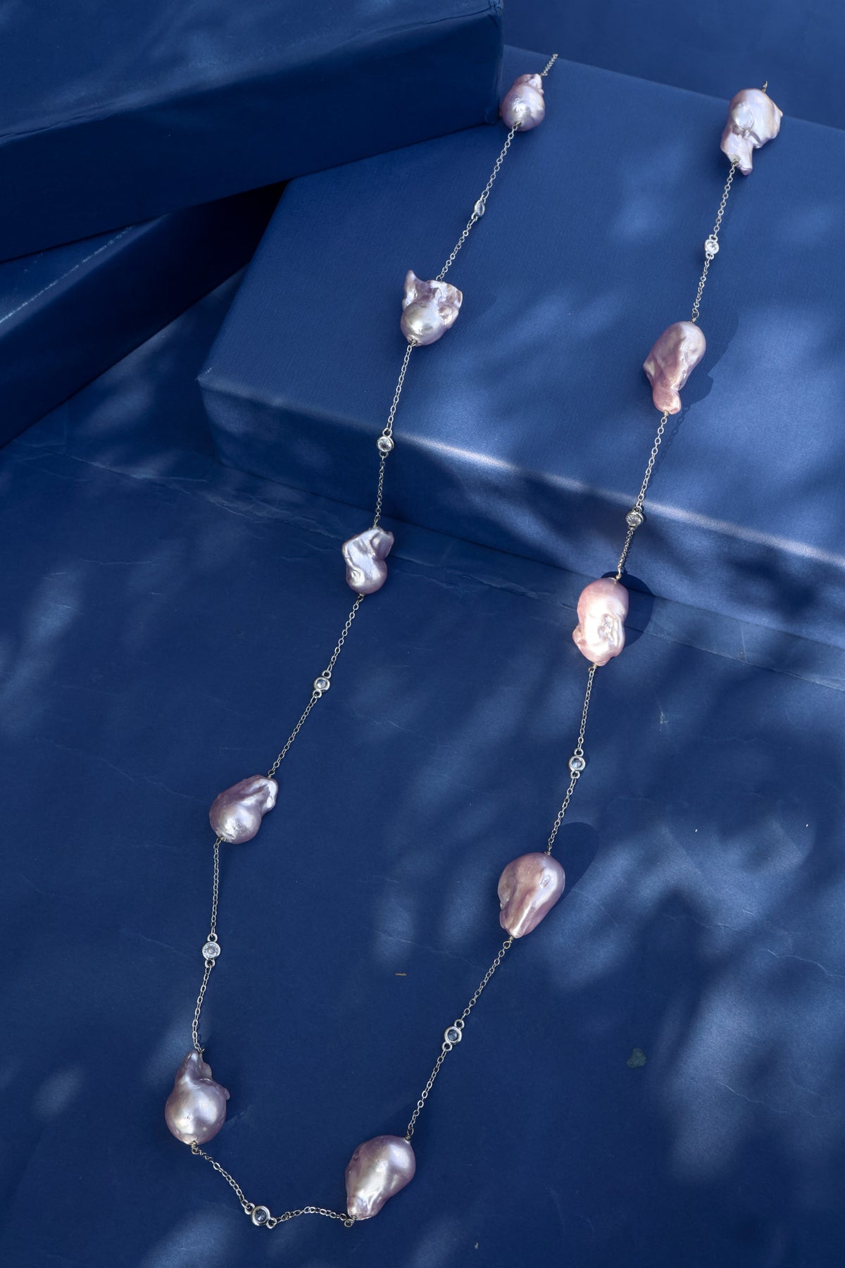 This contemporary Cerise necklace features unique baroque pearls that add a touch of elegance to any outfit. The pearls are carefully strewn together to create a sophisticated and eye-catching accessory. Elevate your style with this modern and timeless necklace.