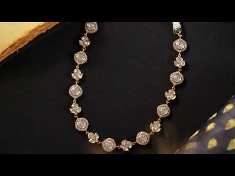 Refine your style with this expertly crafted necklace, featuring meticulously detailed circular polki motifs accented by cubic zirconia, embodying a subtle yet timeless vintage elegance.