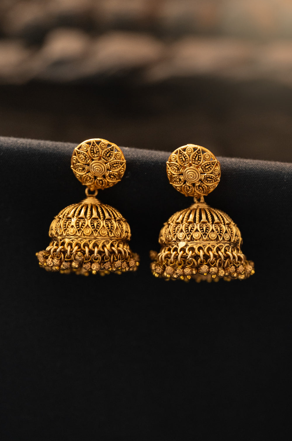 Onni Temple Work Jhumka Earrings