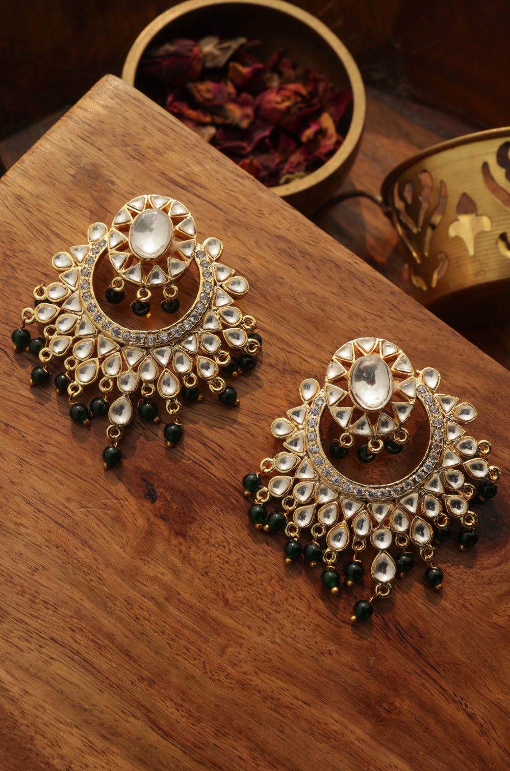 Himanshi Green Polki Earrings