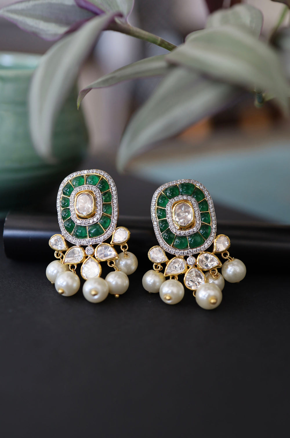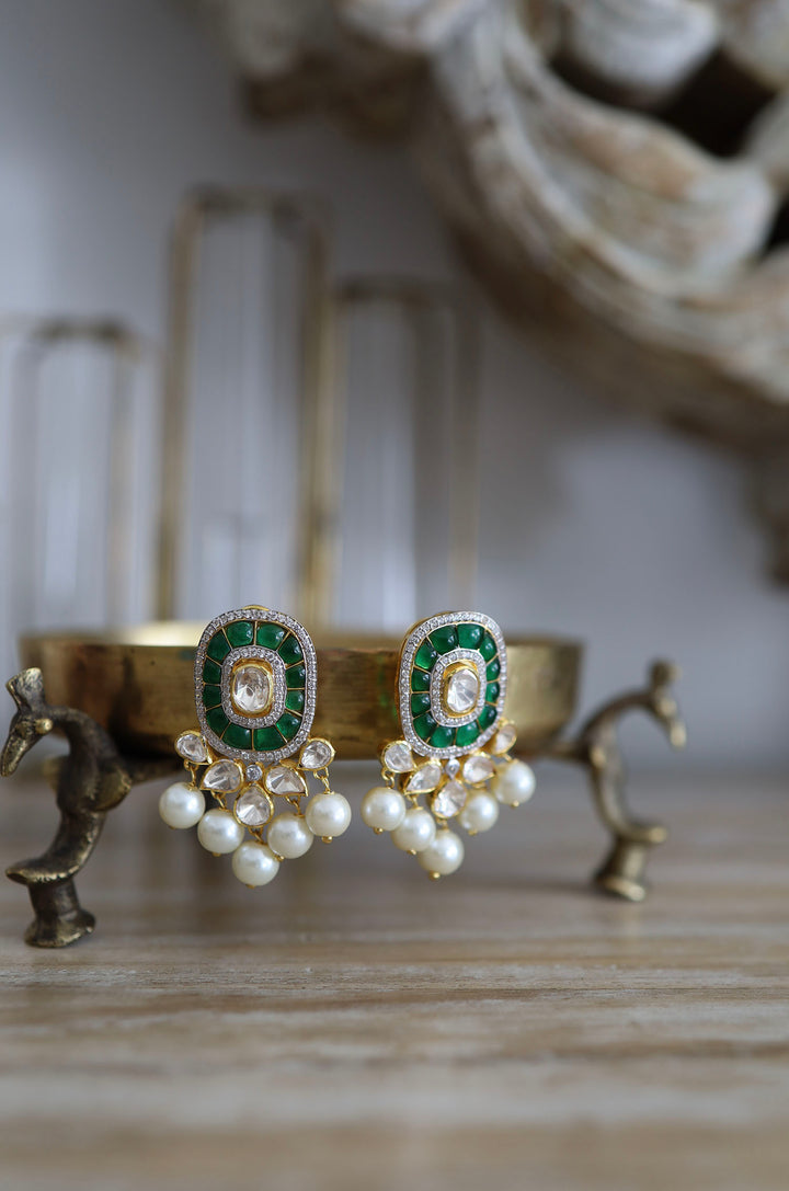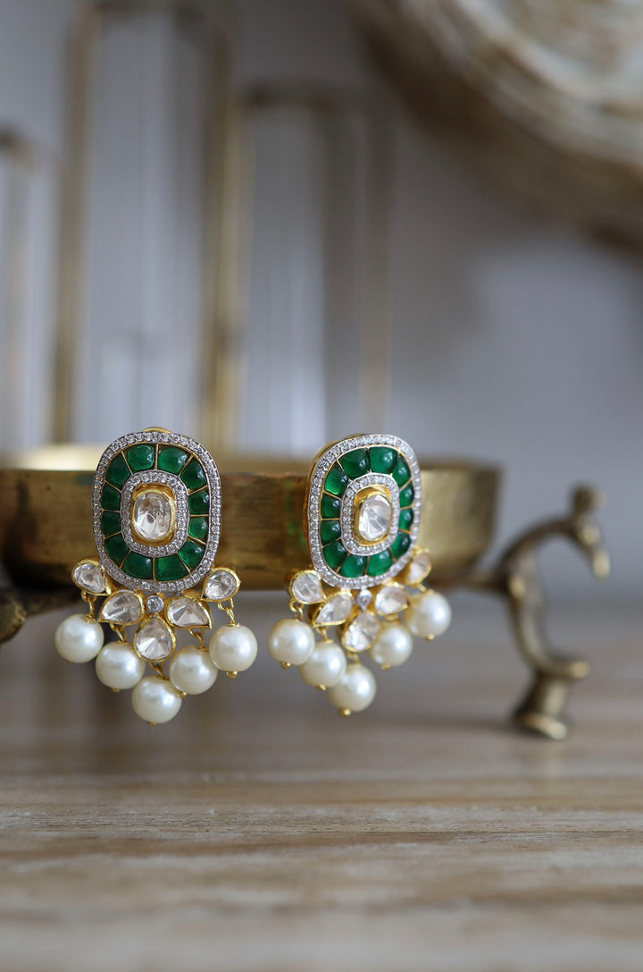Jahzara Green Polki Silver Studs