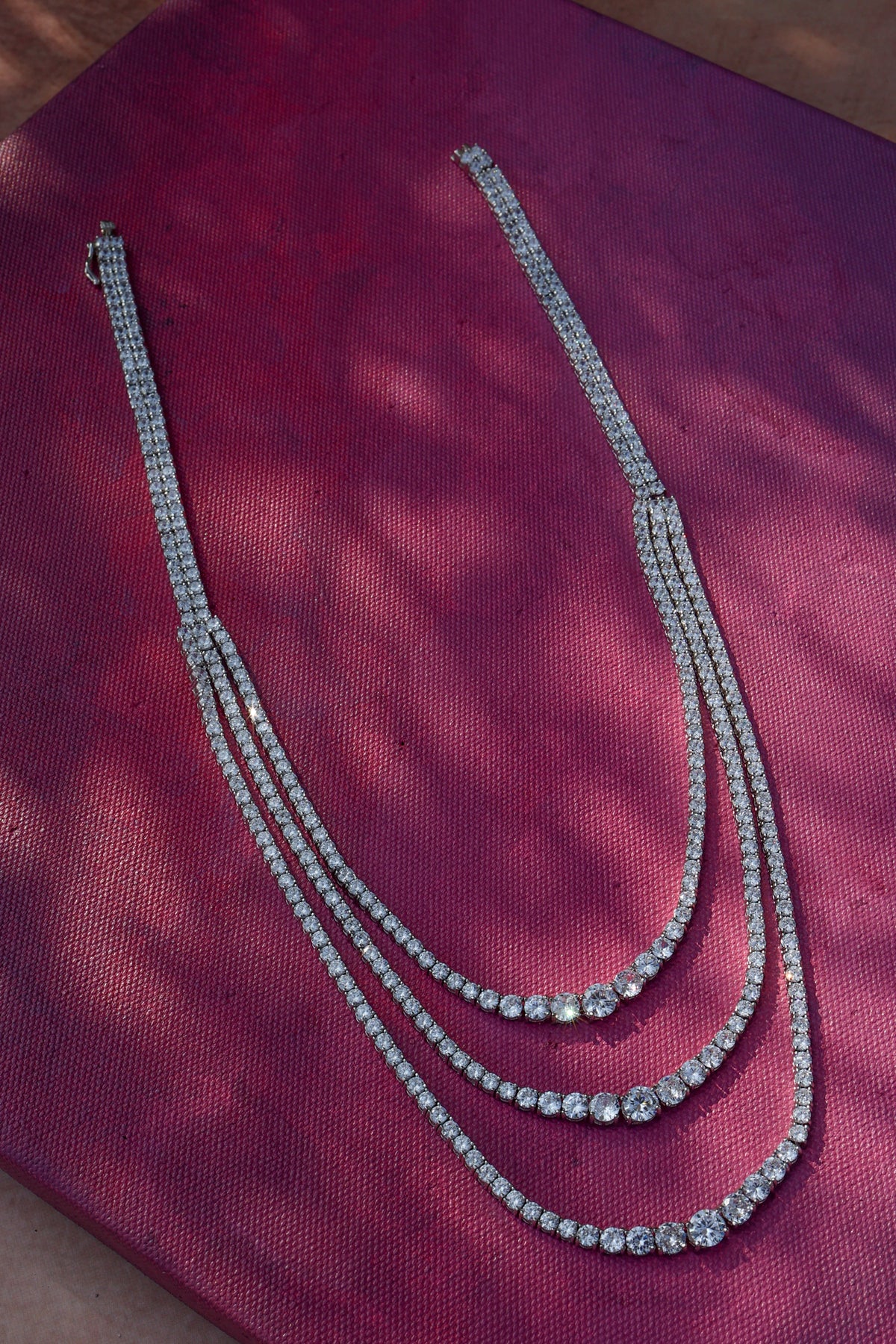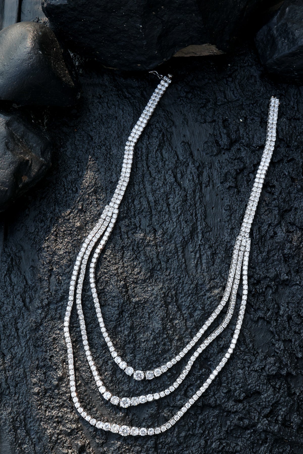 Discover the ultimate in chic elegance deliha necklace, which features delicate strands of shimmering faux diamonds that cascade beautifully, creating a striking visual effect. The varying lengths add depth and dimension, making this piece a standout accessory for any occasion.