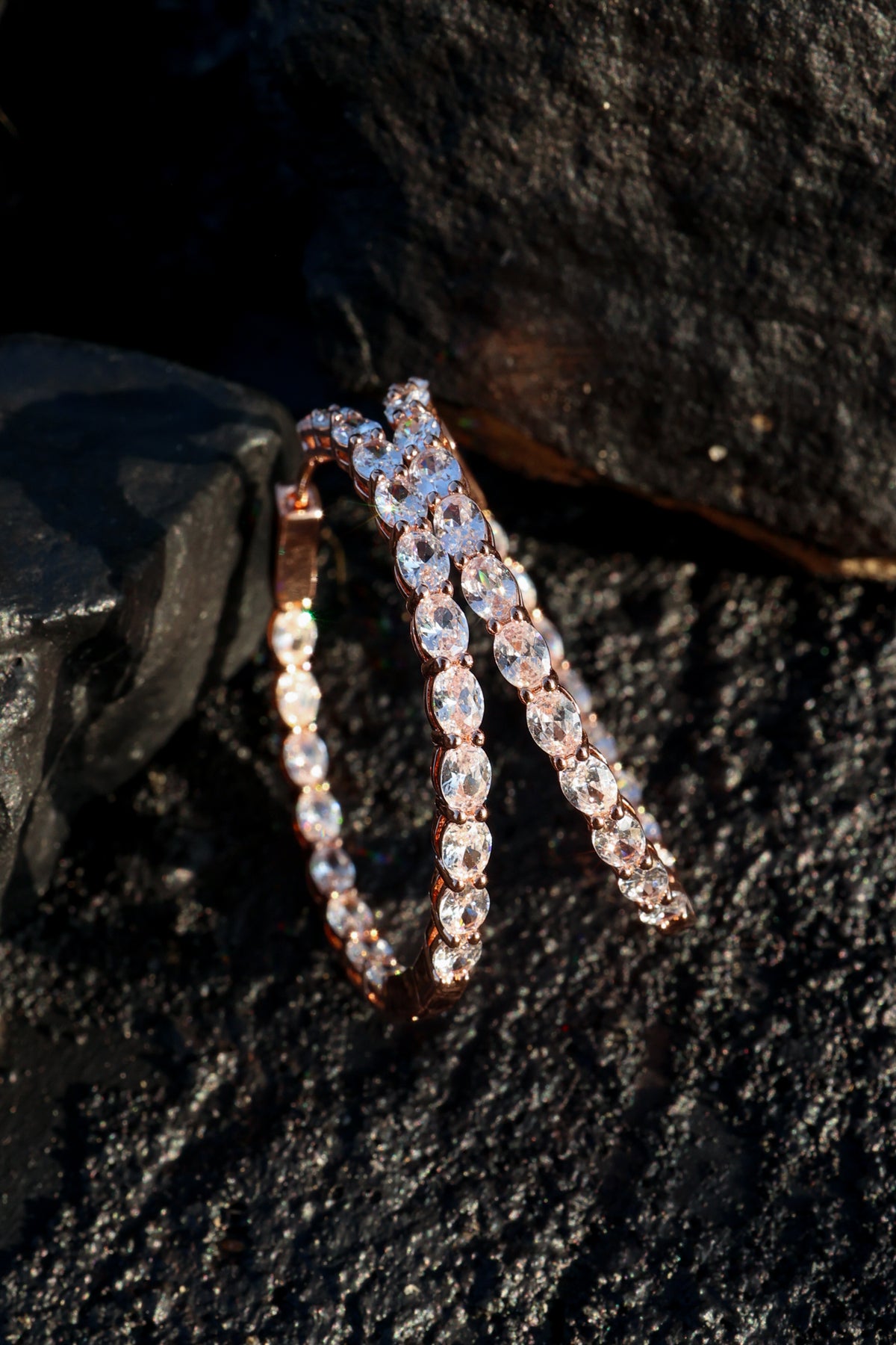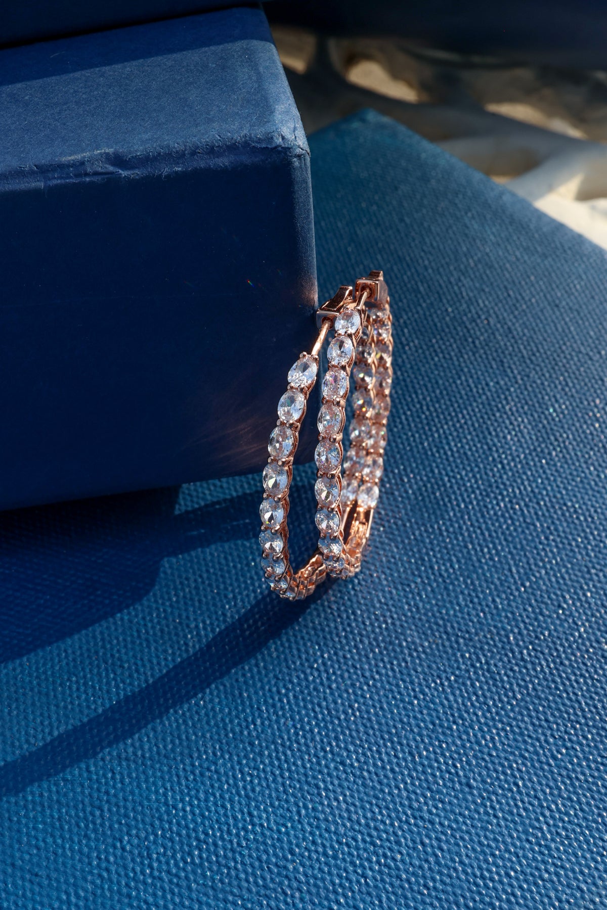 Pair of sleek, minimalistic hoop earrings encrusted with sparkling white zirconia. These earrings offer an elegant yet understated look, perfect for everyday wear or for adding a touch of sparkle to a more casual outfit. They're the ideal combination of chic minimalism and modern glamour!