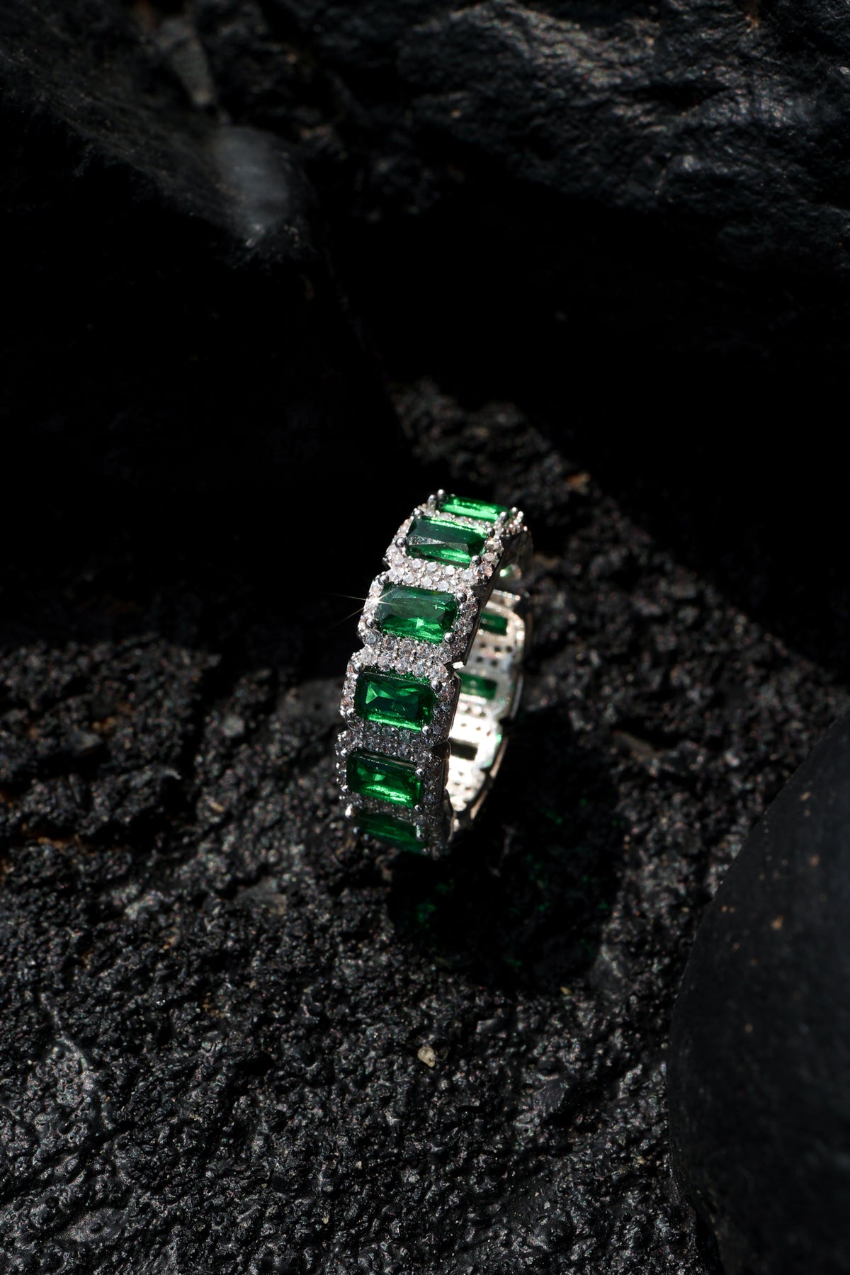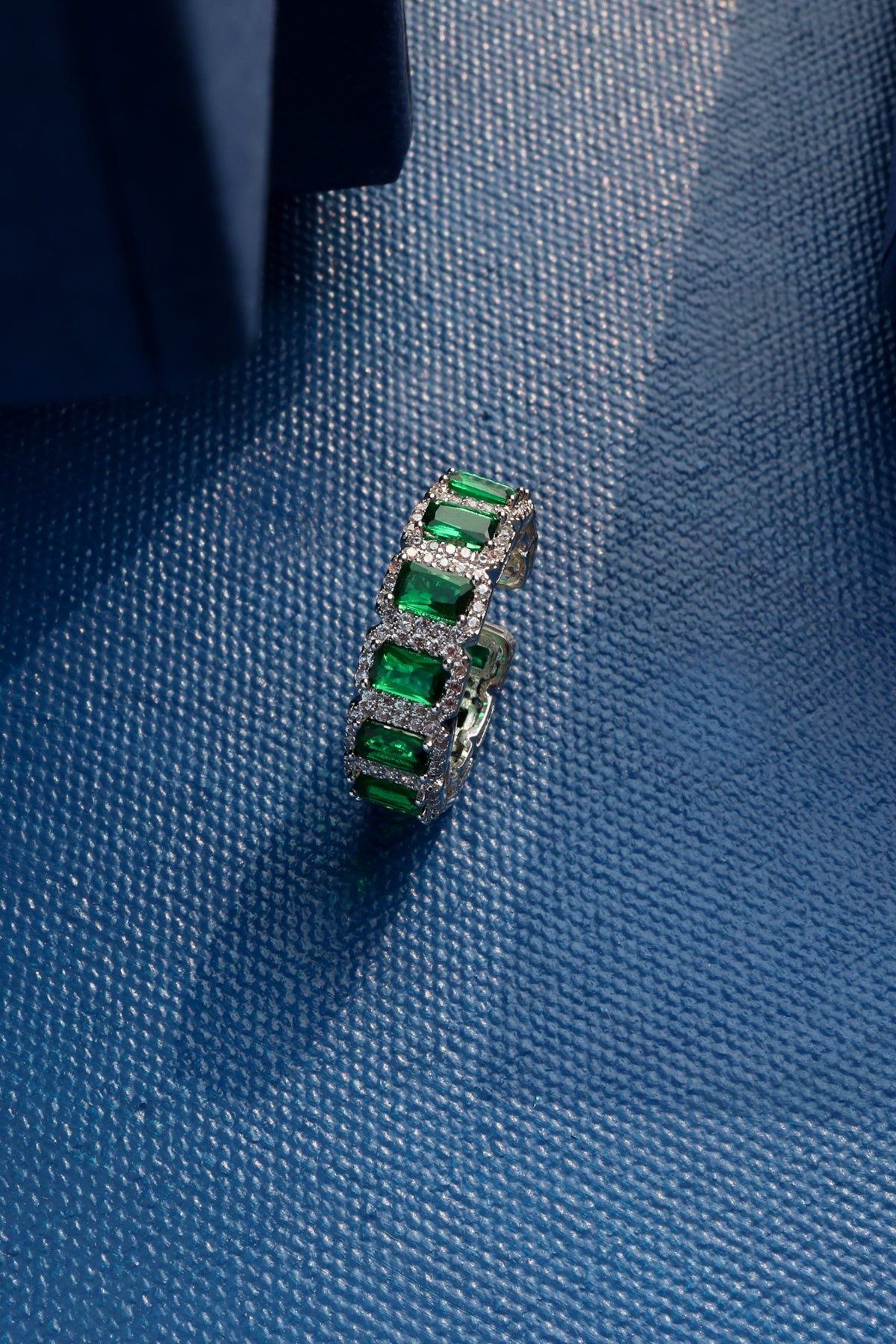 Timeless elegance meets modern sophistication in this exquisite cubic zirconia encrusted ring. Showcasing a unique design with a vibrant green crystals, this chic and refined piece is perfect for any occasion. Whether you're attending a formal event or simply running errands, this ring's versatility ensures it will always be a fitting choice.