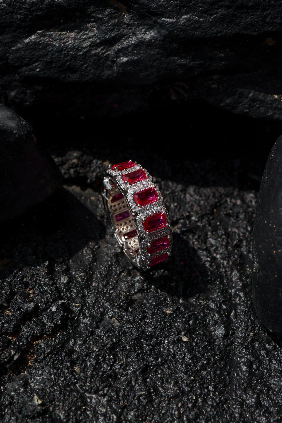 Timeless elegance meets modern sophistication in this exquisite cubic zirconia encrusted ring. Showcasing a unique design with a vibrant pink crystals, this chic and refined piece is perfect for any occasion. Whether you're attending a formal event or simply running errands, this ring's versatility ensures it will always be a fitting choice.
