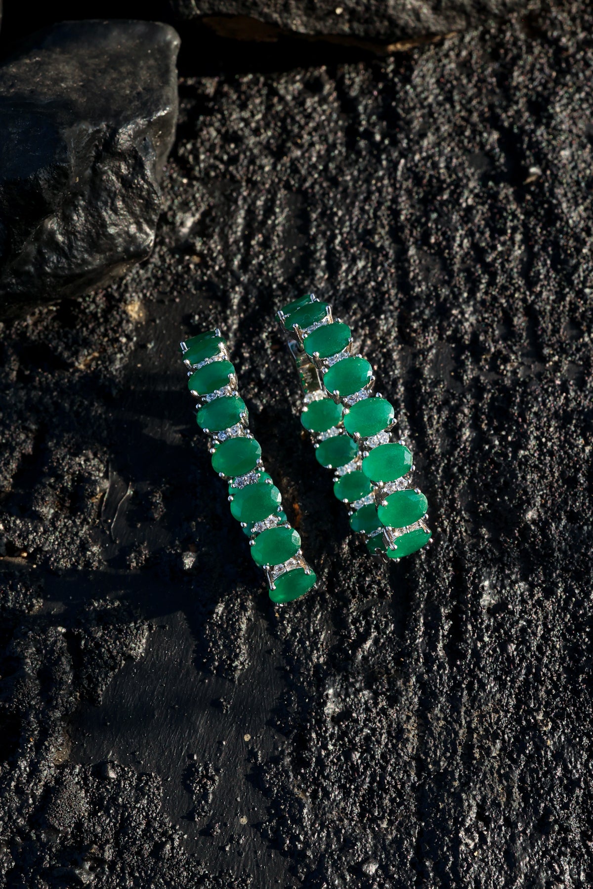 Elevate your style with our Mila hoops. These gorgeous earrings showcase intricate design and stun with dazzling green stones. Step up your everyday look with a touch of timeless elegance.