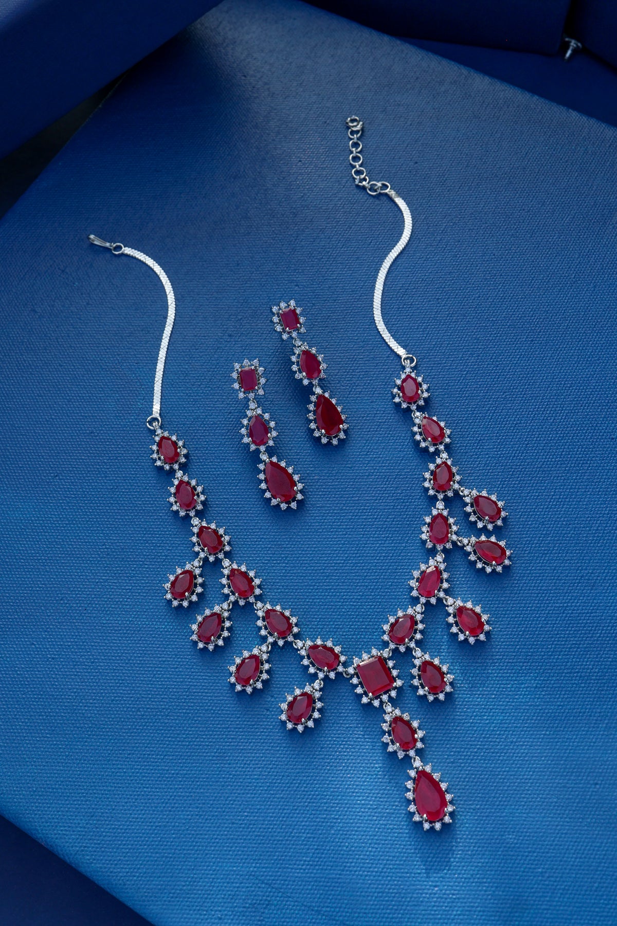 Add a pop of fiery color to your look dainty and encrusted with faux diamonds, this set includes a matching pair of earrings. Perfect for adding a touch of sparkle and playfulness to any outfit.