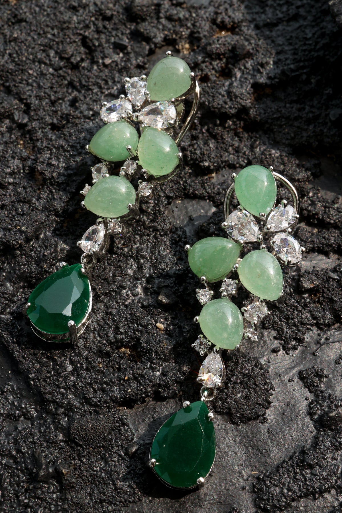 These classic earrings are a true statement piece, encrusted with vibrant green  and mint fluorite stones. The combination of rich colors and timeless design exudes a refined elegance, making them the perfect accessory for adding a chic touch to any outfit.
