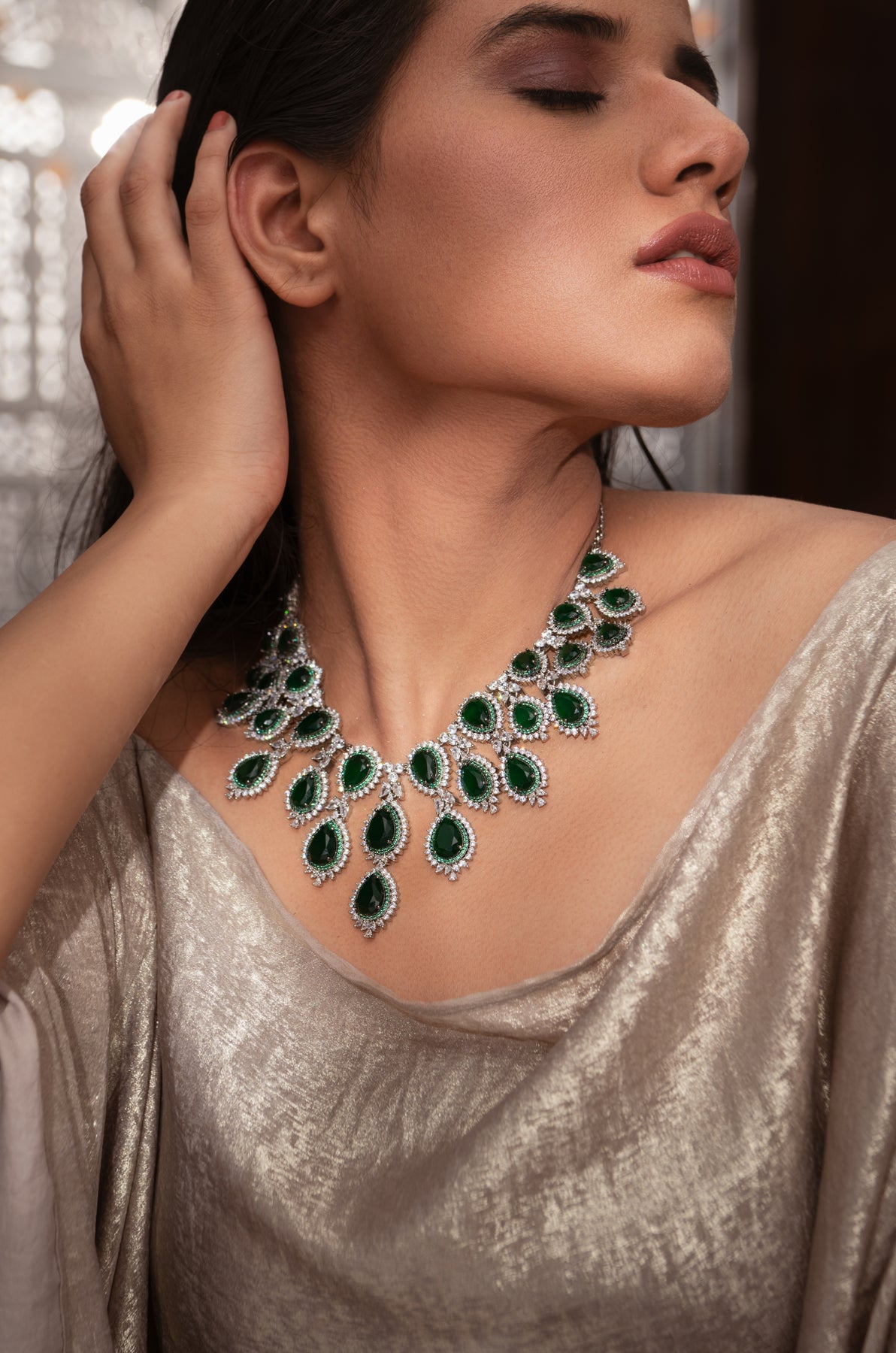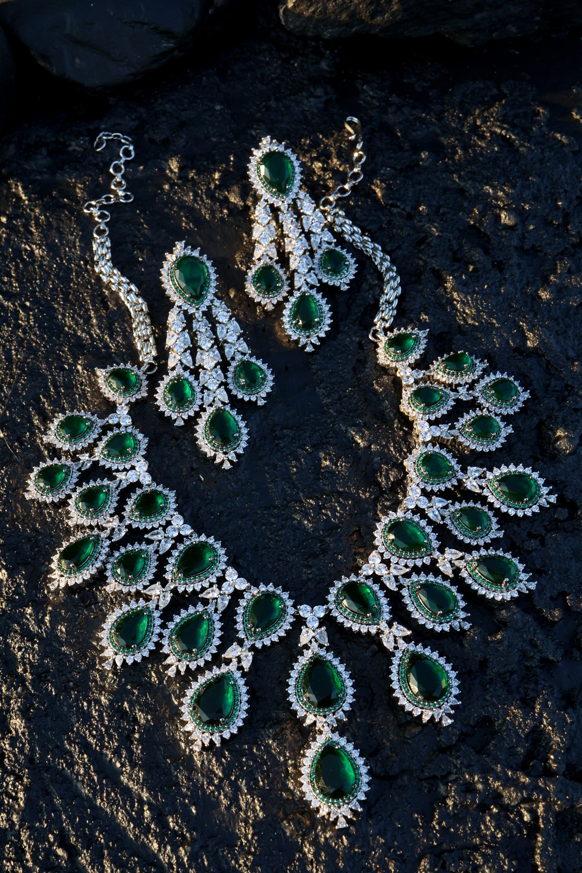 Elevate your jewelry collection with the stunning Willow necklace set, featuring a captivating teardrop pattern throughout. Accompanied by matching earrings that echo the necklace's exquisite design, this set is perfect for making a bold impression at any event.
