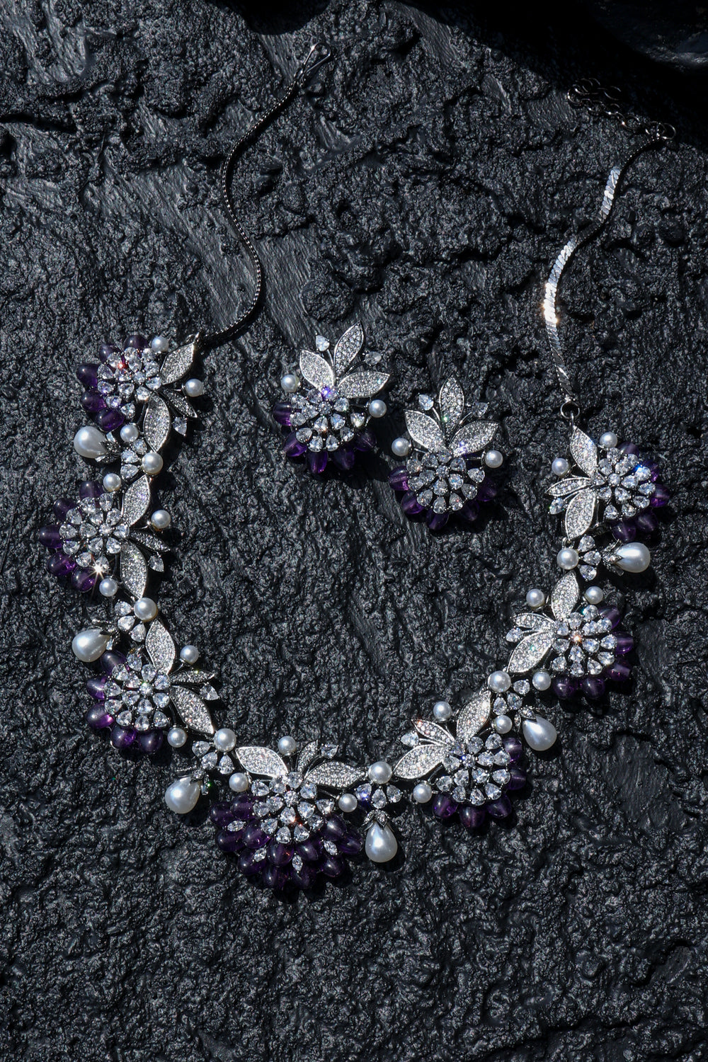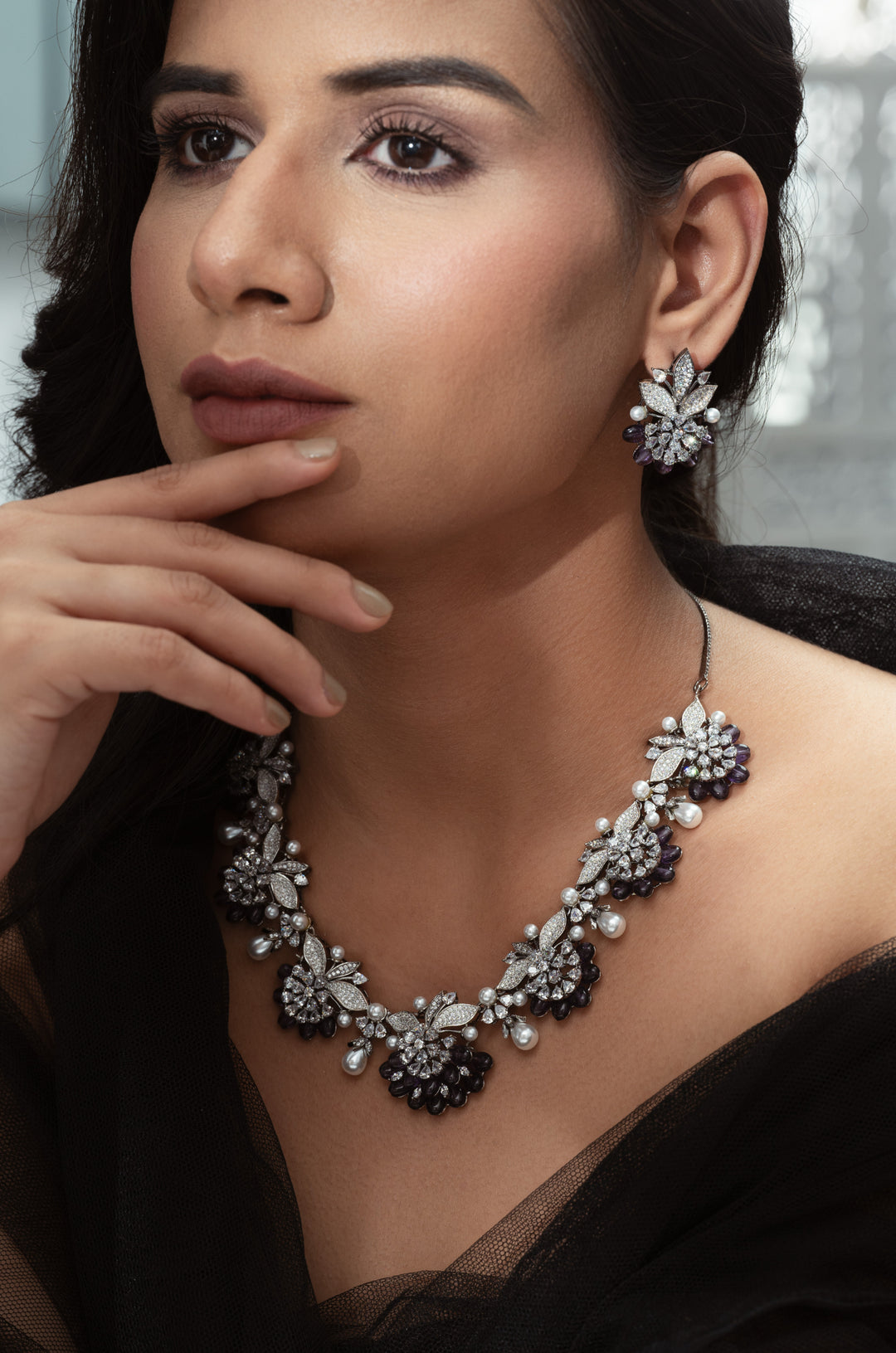 Nikki Faux Diamond and Rhodolite Crystals Necklace Set