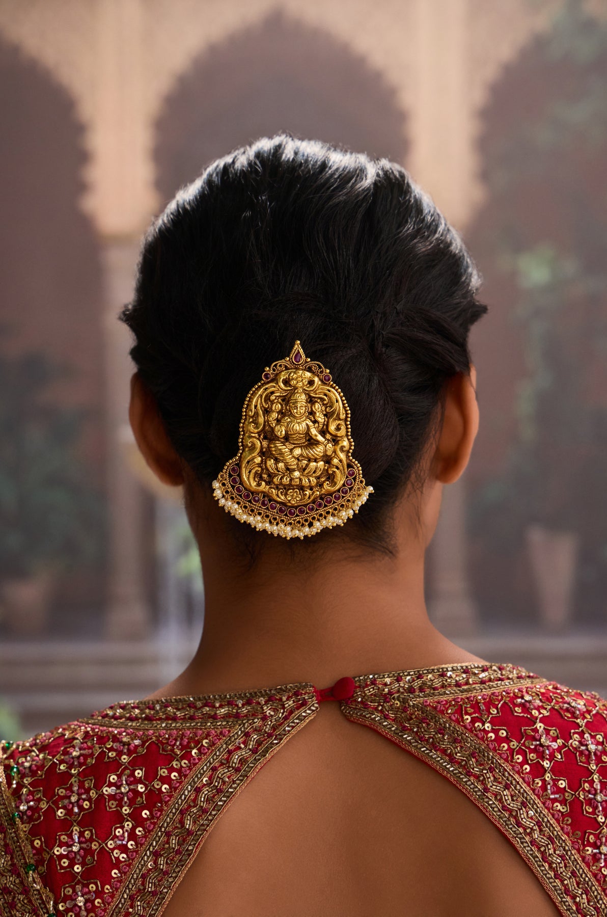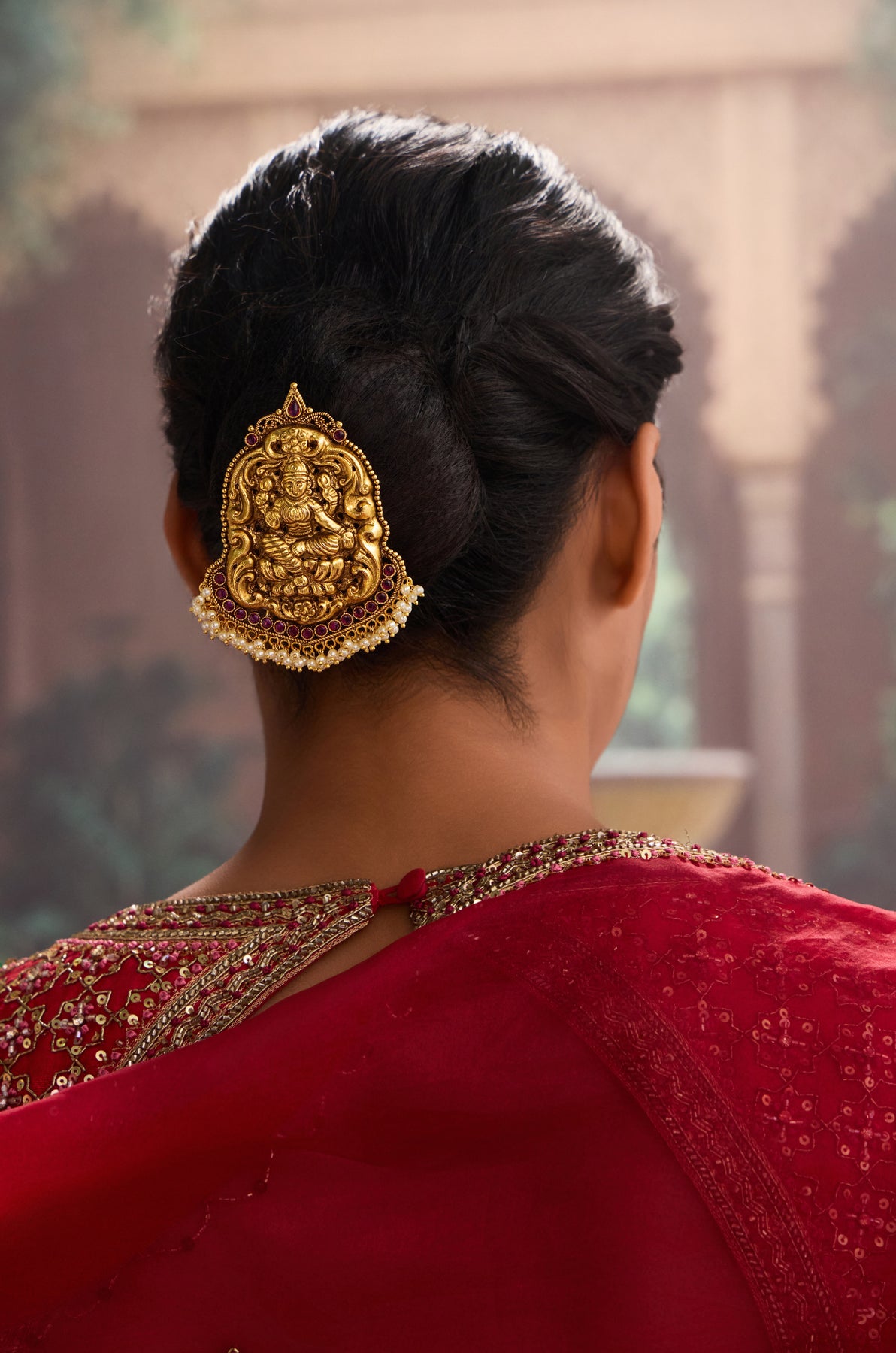 Secure your braids with a touch of temple artistry! This traditional Avisha braid pin features intricate temple work detailing that transforms a practical hair accessory into a statement piece. Perfect for keeping your style intact while celebrating timeless craftsmanship. Whether you're heading to a festival or adding flair to everyday wear, this pin blends functionality with cultural elegance. A playful nod to heritage that keeps your locks in place and your look on point.