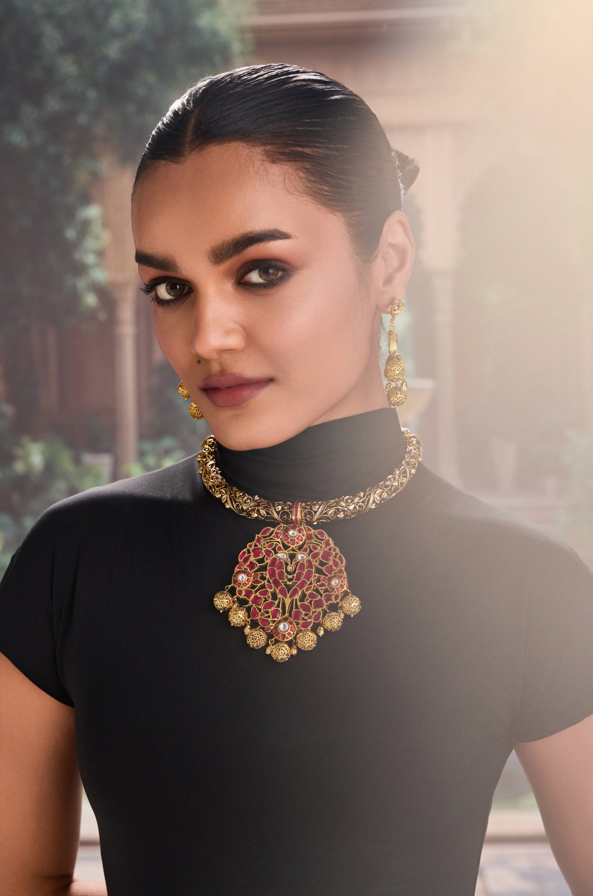 Raghvi Temple Work Hassli Necklace Set
