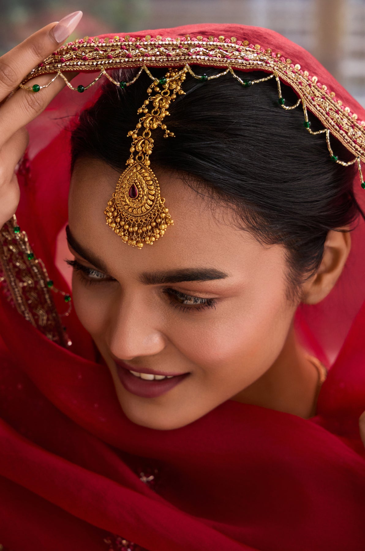 Elevate your look with the Saaveri maangtikka, a playful nod to timeless tradition! This gorgeous piece showcases intricate temple-inspired craftsmanship that whispers stories of heritage with every wear. Whether you're celebrating a special occasion, dancing through a festival, or simply sprinkling some cultural magic into your day, this maangtikka is your go-to accessory. Beautifully designed to blend classic charm with modern flair, it's the perfect way to express your style while honoring tradition.