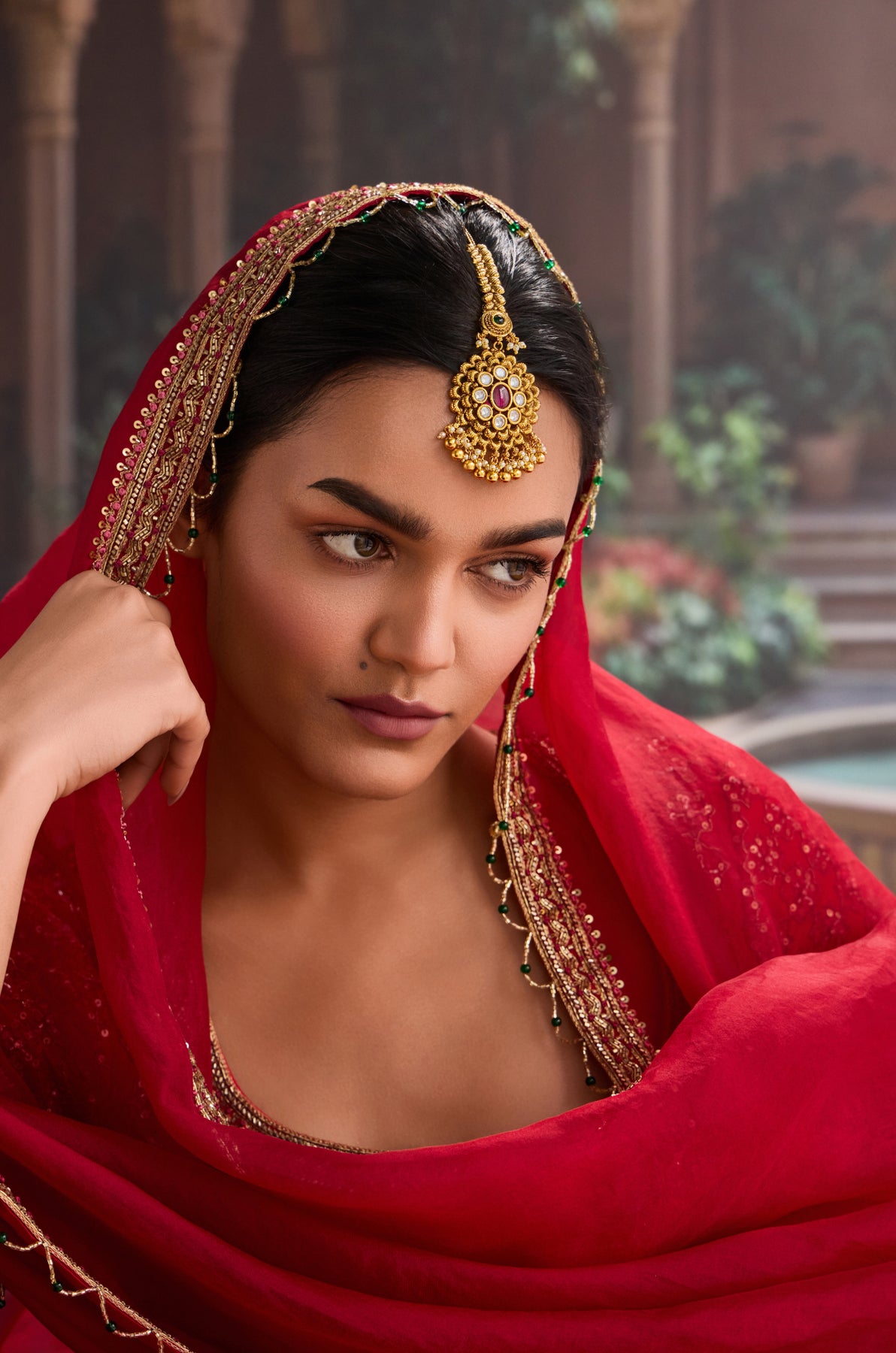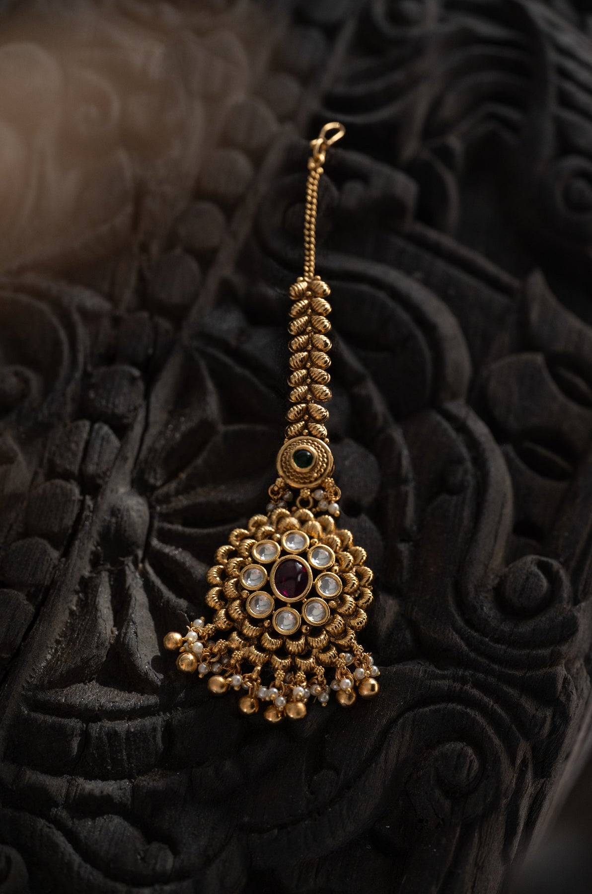 Elevate your festive look with the Tarika maangtikka, a playful nod to timeless tradition! This beauty showcases intricate floral temple craftsmanship that dances across your forehead with undeniable charm. Whether you're celebrating a wedding, festival, or special moment, this piece weaves heritage into your style effortlessly. Watch how the delicate details sparkle and shimmer, drawing admiring glances your way. It's more than jewelry- it's a celebration of cultural artistry that lets your personality shine through with grace and flair!