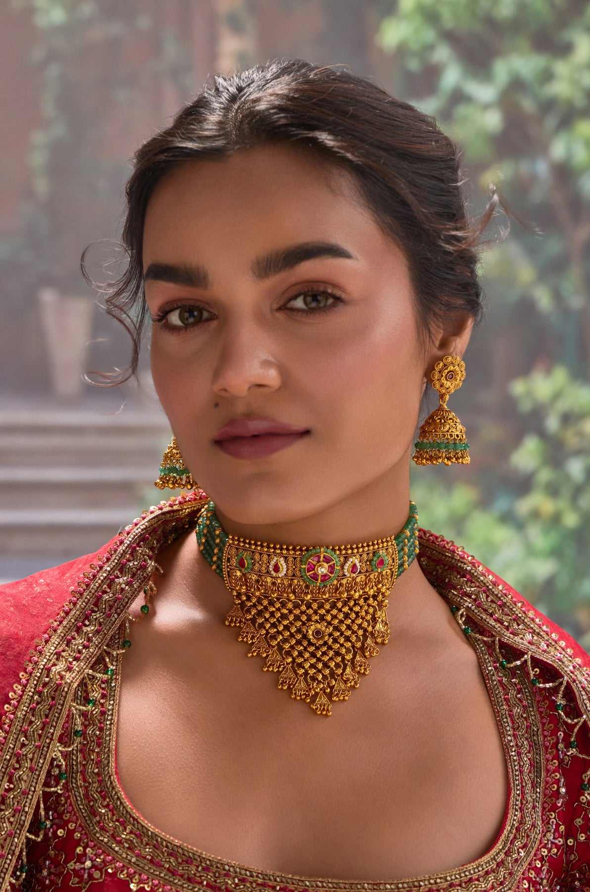 Wamika Green Temple Work Necklace Set