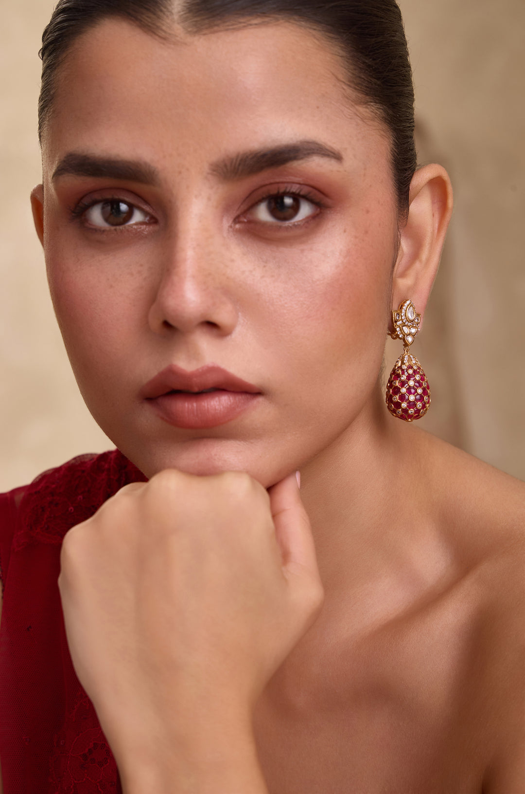 Crimson Polki Drop Earrings