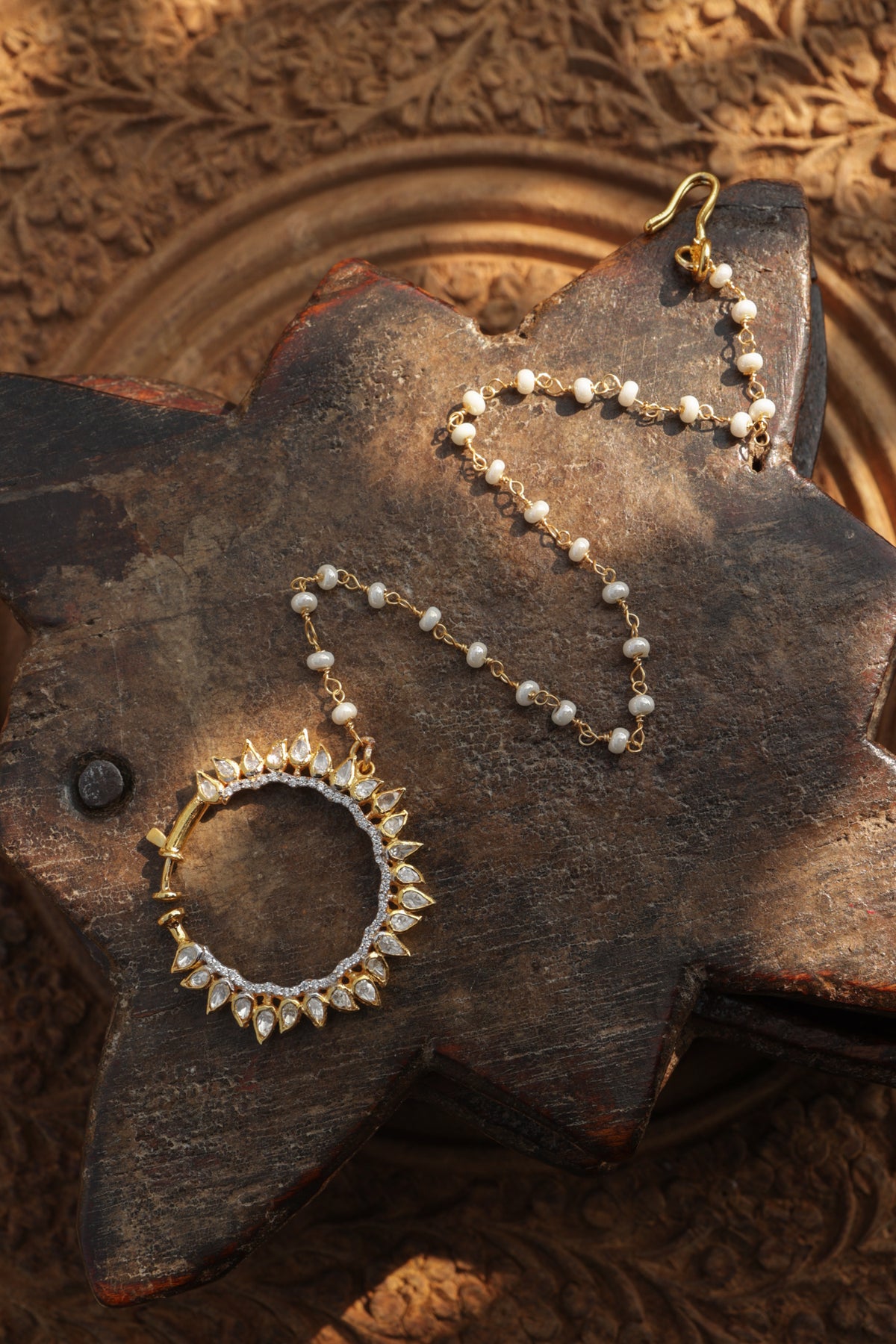 Crafted from fine silver, this Ashvee Polki nosepin represents timeless elegance and exceptional craftsmanship. The intricate polki work, featuring moissanite polki in traditional patterns that creates a luminous, sophisticated aesthetic that transcends fleeting trends. Each piece is meticulously finished to heirloom quality standards, designed to be treasured and passed down through generations. The secure, comfortable fit ensures everyday wearability without compromising on luxury. An investment in enduring beauty and cultural artistry.