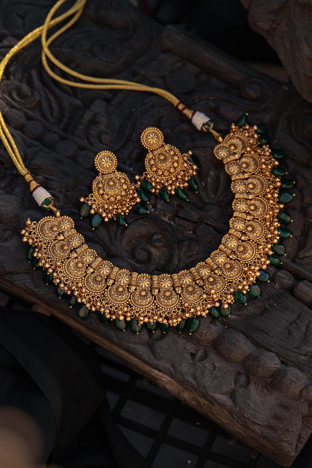 Girisha Green Temple Work Necklace Set