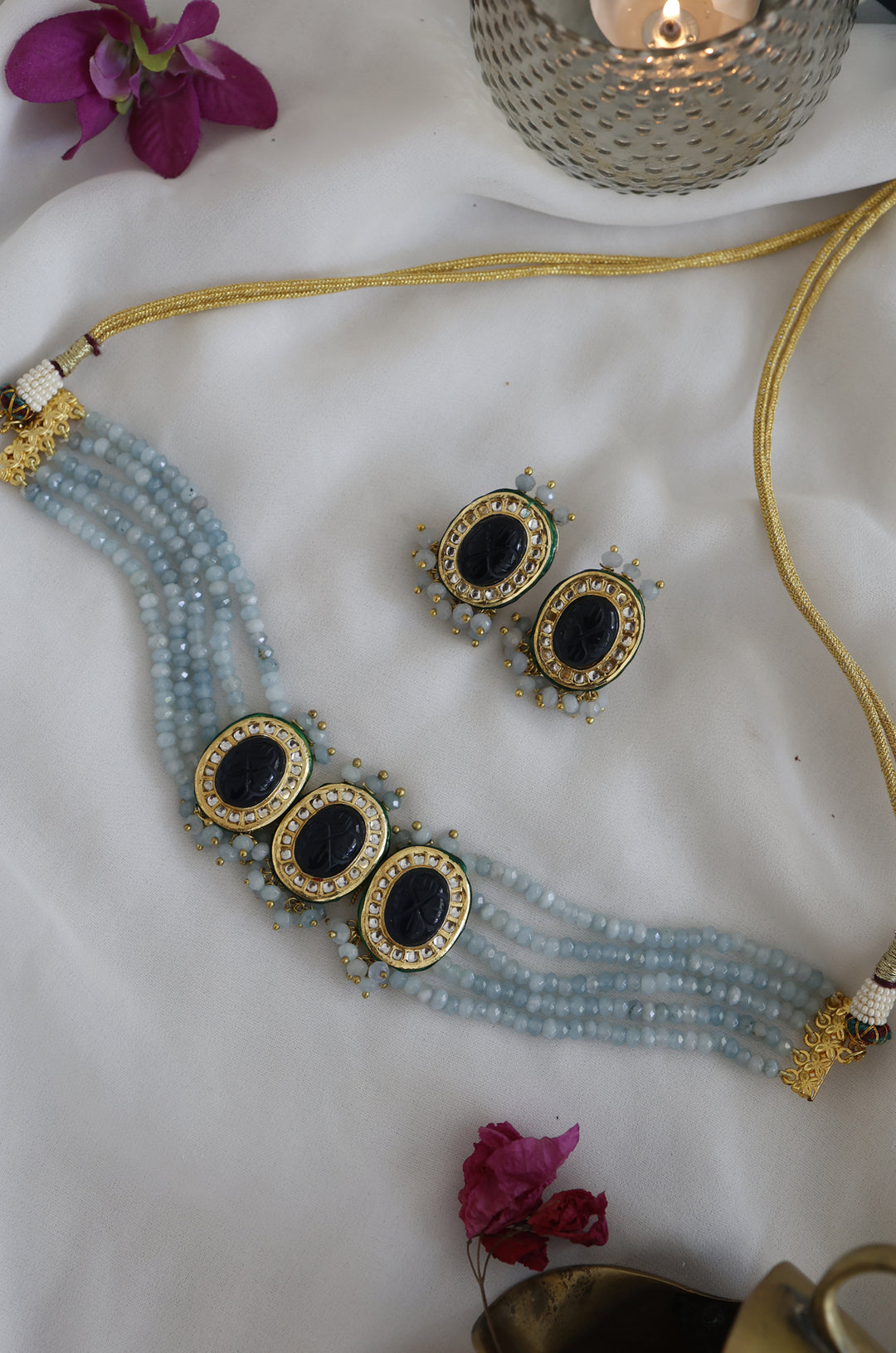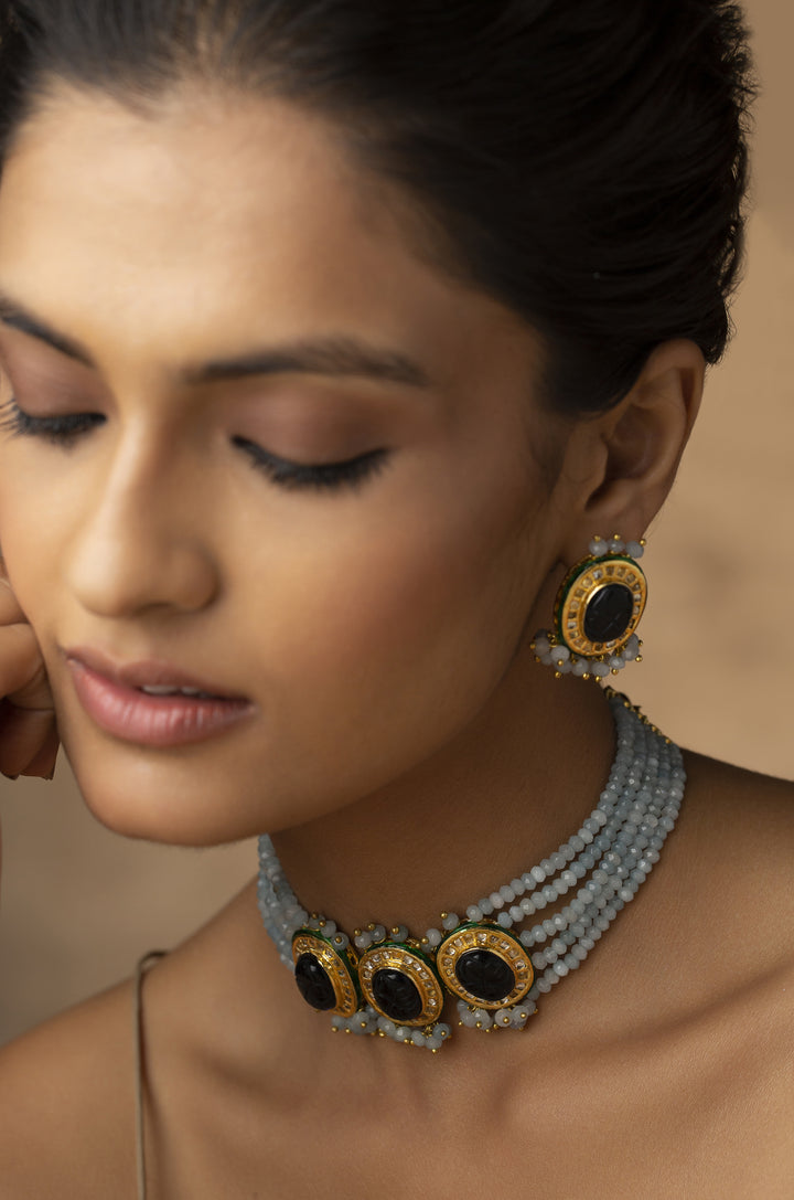 Purvi Blue Kundan Necklace Set