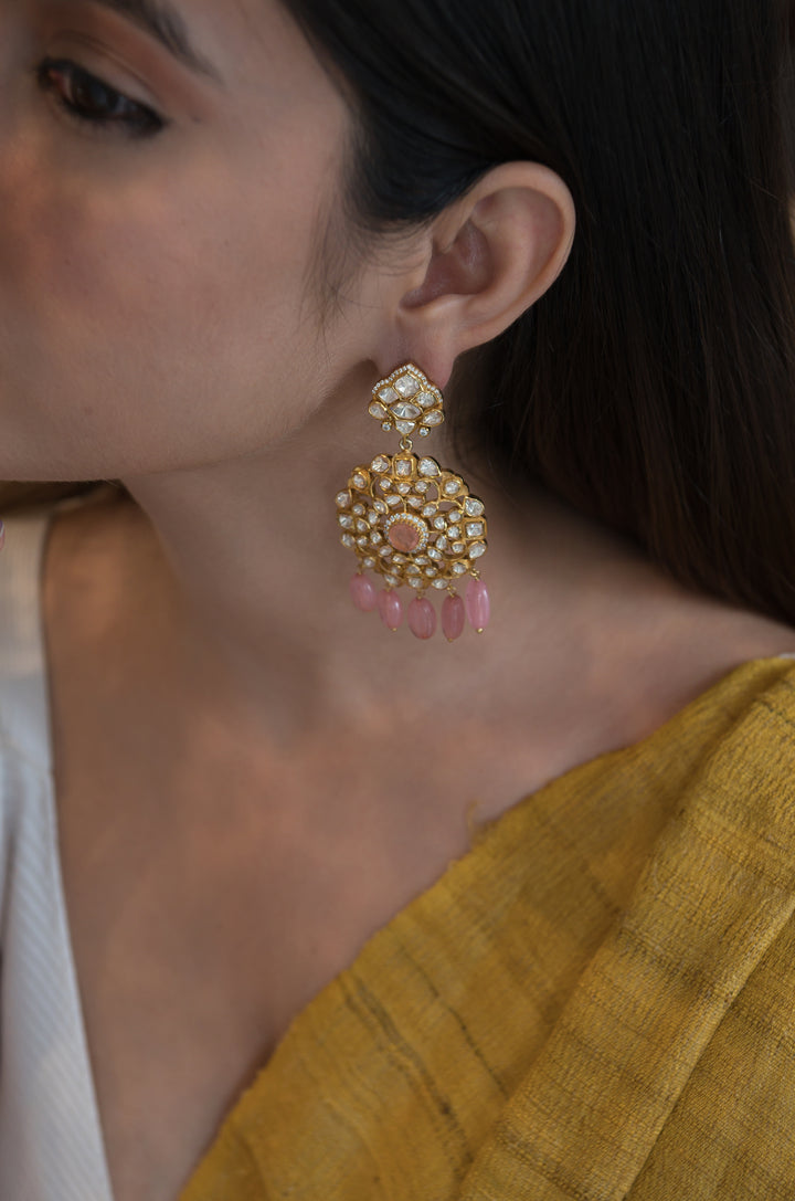 Uniquely crafted and rooted in our traditional jewelry-making techniques, our Shifa drop earrings are designed with a modern twist to compliment the brides of today. These delicately detailed earrings are nothing less than a royal heirloom.