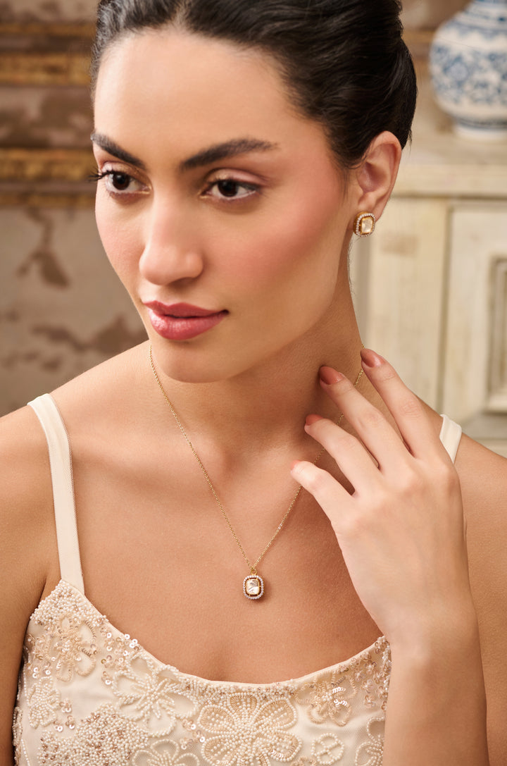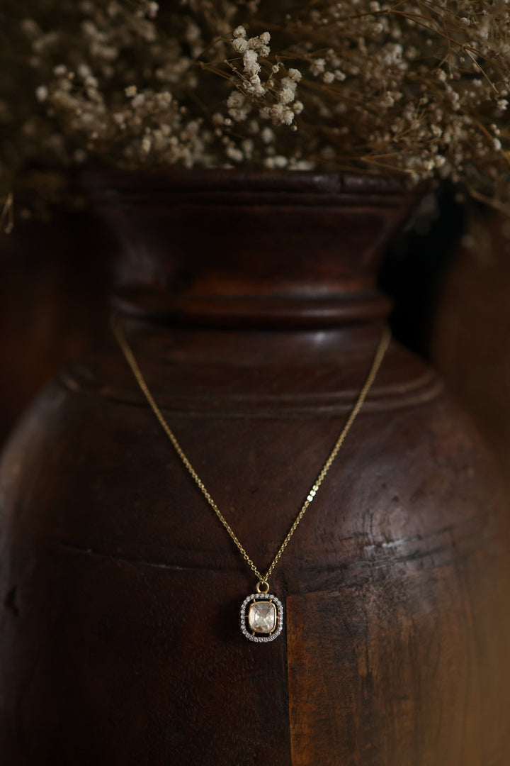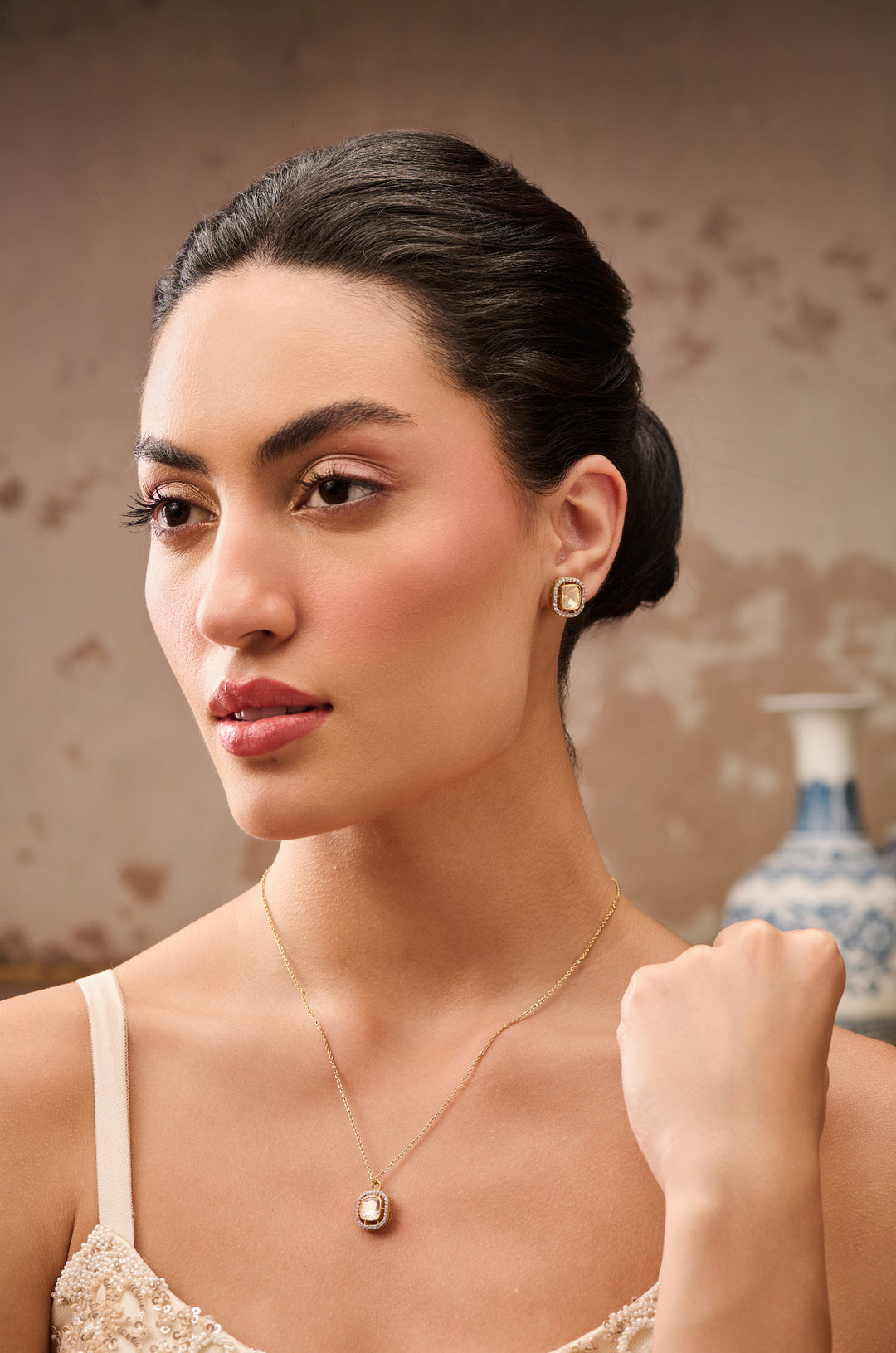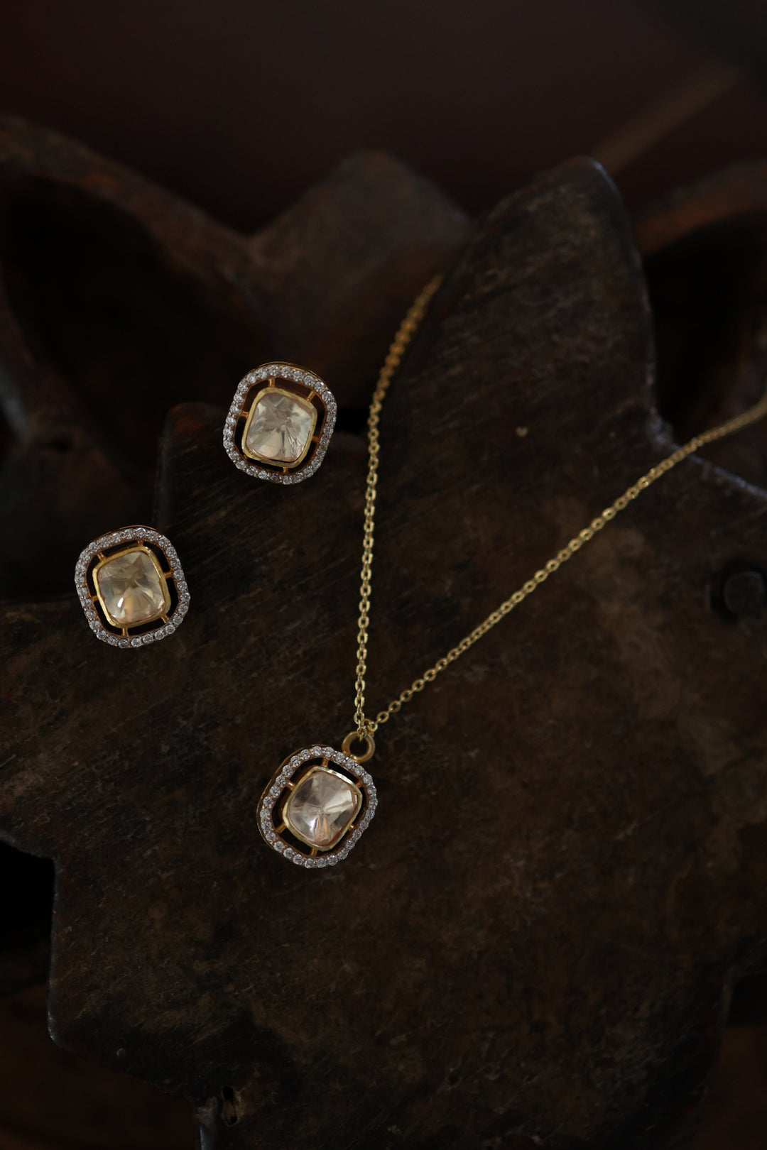 Experience the ultimate versatility with the Tanisha necklace set. This stunning piece features an exquisite design that is a must-have for any jewelry lover. Combining the shimmer of polkis with the sparkle of moissanite, this necklace is a harmonious blend of textures, making it a truly perfect addition to your collection.